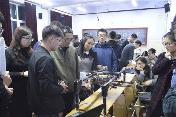 比赛开始前,双创中心副主任牛耕野作为本次比赛主持人简单介绍了本次比赛的规则以及几位评委,各组参赛队伍都到达自己的展位准备展示自己的作品。作品评选时,评委老师们按作品序号依次检验各组的成果,新型变速器、轻质材料的飞行器,高自由度的机器车等优秀作品展示在评委老师们眼前。评委老师们根据创新性等特点来评选出优秀的作品,也希望大家的作品能过进一步完善和提高。