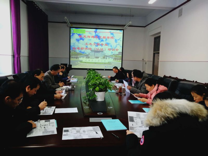 2018年1月15日,寒假正式开始的第一天,土木工程专业在航建学院会议室召开了住建部评估(认证)培训会暨2018土木专业认证启动大会,党委书记李修志,院长齐辉,教学副院长何建以及土木与环境工程系全体教师参加了会议。自此拉开了2018年认证工作的帷幕。