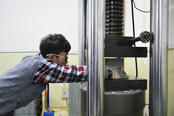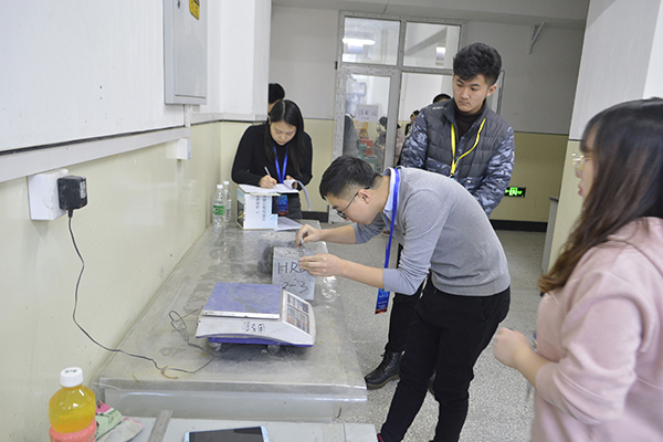 上午9时40分,大赛正式开始,各参赛队伍在11号楼准备就绪。各组同学依序前往加载实验室进行压件,我院工作人员帮助参赛人员搬运试件,清理压损试件,组织秩序。各组同学默契有序,相互交流探讨科创经验。