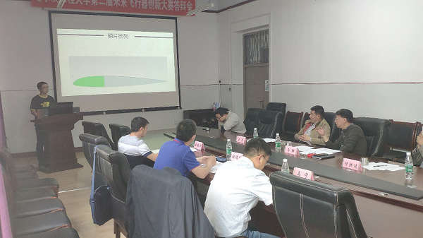 14时10分,答辩环节正式开始。首先答辩的作品是《海空11号》。此作品引入全新的设计理念,让评委和参赛选手耳目一新。而接下来的作品《仿鲨鱼皮减阻结构》向大家展示了全新的未来飞行器,大胆的想象、合理的论证、缜密的计算、精彩的答辩内容,给评委们留下了深刻的印象。而《新型负压式展开的柔性折叠翼》、《变后掠翼超音速巡航无人机》等作品一再超出大家的想象,给每位参会人员都带来了视觉上的冲击和思维上的拓展。