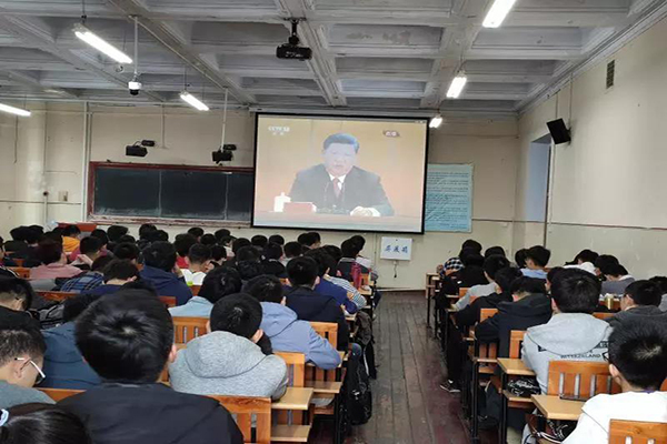 4月30日十时三十分,纪念五四运动100周年大会在人民大会堂举行,习近平总书记出席大会并发表重要讲话。讲话全文七千余字,情真意切、催人奋进。为增强航建学院学生的远大抱负和家国情怀,航建学院学生工作办公室主任张德伟组织航建学院全体党员,入党积极分子,各班班级干部和学生会主要学生干事于十一号楼132大教室观看学习。