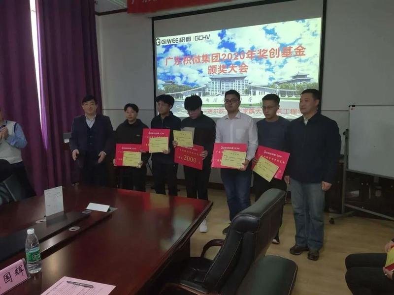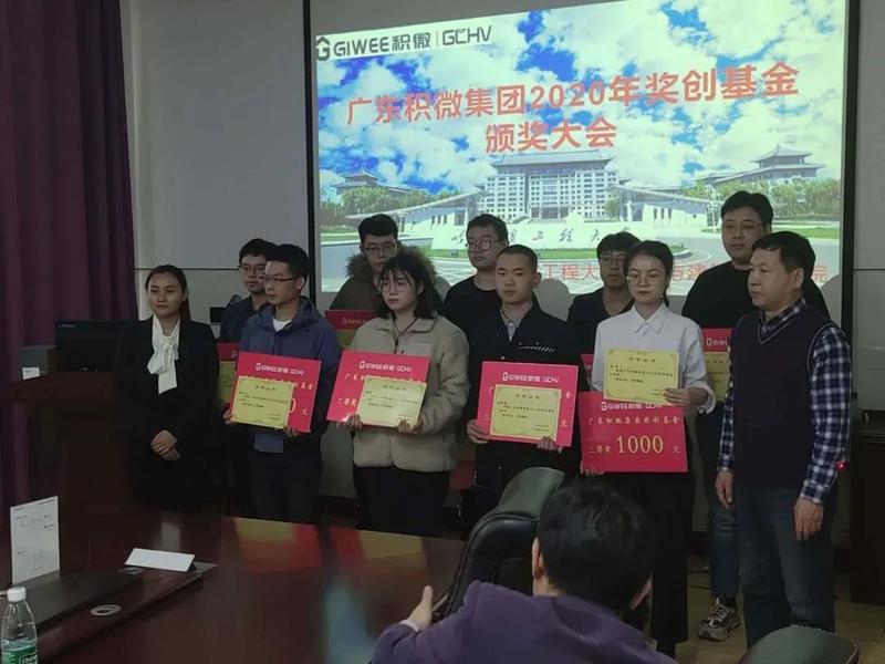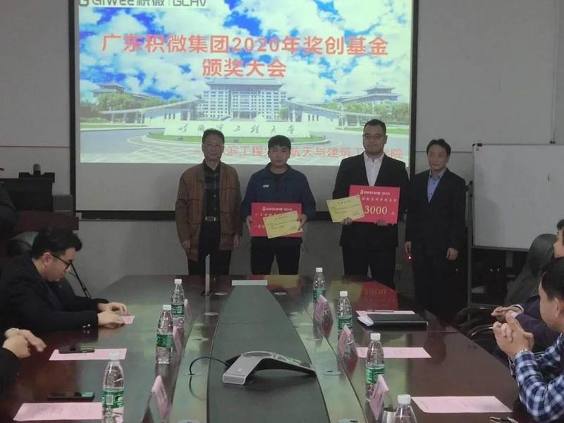 仪式最后广东积微集团代表向获得2020年度广东积微集团奖创基金的学生颁发获奖证书和奖金。