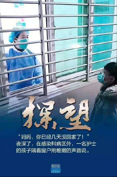 “妈妈,你已经几天没回家了!”一位护士与孩子的隔窗对话