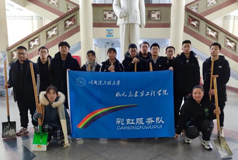 11月22日,航建学院彩虹服务队于哈尔滨工程大学11号楼与21A间的小路开展第二次志愿清扫积雪活动。此次活动由负责人崔晨飞和高云翔带领,参与活动的还有12位彩虹服务队志愿者。本次活动的主题是对11号楼与21A间的小路进行积雪清扫。志愿者们于9时30分在11号楼北门集合完毕,活动开始前,活动负责人崔晨飞和高云翔对每人进行工作任务分配,指明此次活动的重心并讲解活动注意事项。随后,志愿者们根据自己被分配到的工作任务,对道路积雪进行清理。本次活动目的是让志愿者们体会到服务同学的快乐,同时为全校师生提供方便,保证道路畅通,保证行人不再摔倒。体现出当代大学生服务社会、服务同学的高尚道德情操。