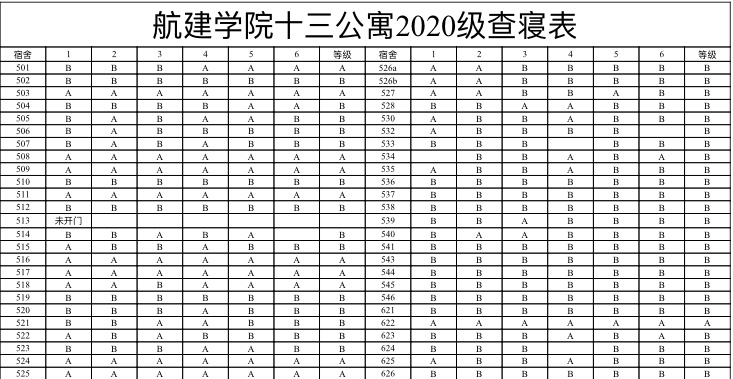 11月23、25日晚,24日早,航建学院学生会开展了本学期第十次(第十三周)寝室卫生检查工作。本次查寝所有寝室积极配合,各公寓内大部分寝室卫生环境和整洁程度优秀,其中以408、232、508、509、525、1002、1004等寝室最佳。而部分寝室如421、446等寝室亟待提升卫生环境与精神文明面貌。在查寝过程中如有发现违规用电,违规用火,私藏管制刀具,打游戏以上四中情况之一,寝室等级将不会超过C。希望各位同学继续努力,共同营造文明整洁的起居环境,保持积极健康的生活状态,助力学习进步。(本周二早上学校对20级进行寝室卫生检查工作,故17、18级提前于23日晚进行寝室卫生检查工作,19级时间正常)
