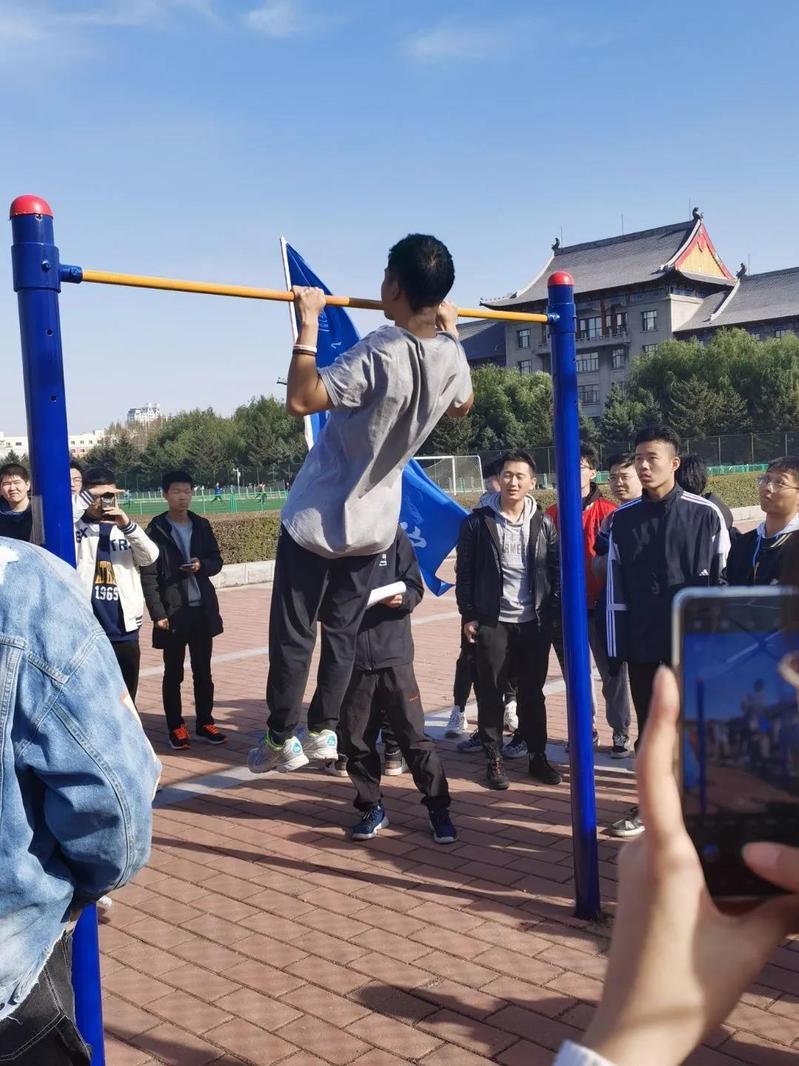 航建学子满腔斗志、意气风发,在引体向上的赛场上,坚定的眼神中满是对冠军的渴望。凡心所向,素履以往,生如逆旅,一苇以航。最终航建学院以总计159个引体向上的优异成绩,勇夺桂冠。