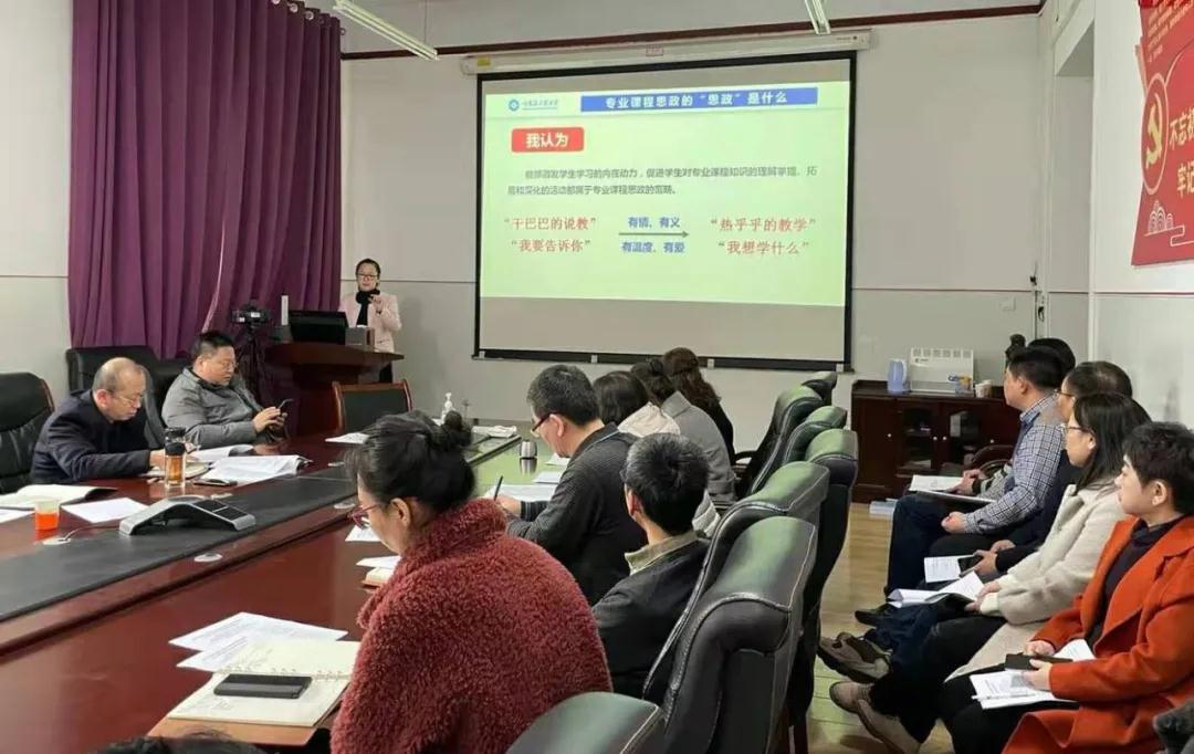 学院党委书记于欣欣以《关于推进课程思政建设的思考—基于专业课教师的课程思政“三问”》为题,结合学院党员干部及骨干教师2021年寒假“学科育人与课程思政”专题网络培训收获,从专业课程思政的“思政”是什么、专业课教师为什么要做“课程思政”、专业课教师如何做“课程思政”三个方面,分享了自己的心得体会。她指出教师们尤其是专业课程教师要进一步提升政治站位,从落实立德树人根本任务的战略举措、全面提高人才培养质量重要任务的高度去认识和把握专业课程思政建设的科学内涵和重要意义,她指出专业课程思政建设,已经不是“教师做与不做”的问题,而是“做得不好就不是一个合格的教师”的问题。于欣欣总结了专业课程思政建设的6个基本原则,凝练专业思政元素的“12341”挖掘法,为课程思政建设提供了一个基本模板,她建议教师们结合课程实践及特色,进一步凝练专业课程思政建设思路,为打造金课夯实基础。