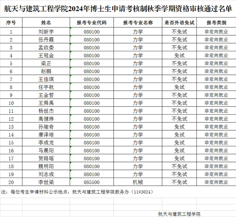 航天与建筑工程学院2024年博士生申请考核制秋季学期资格审核通过名单